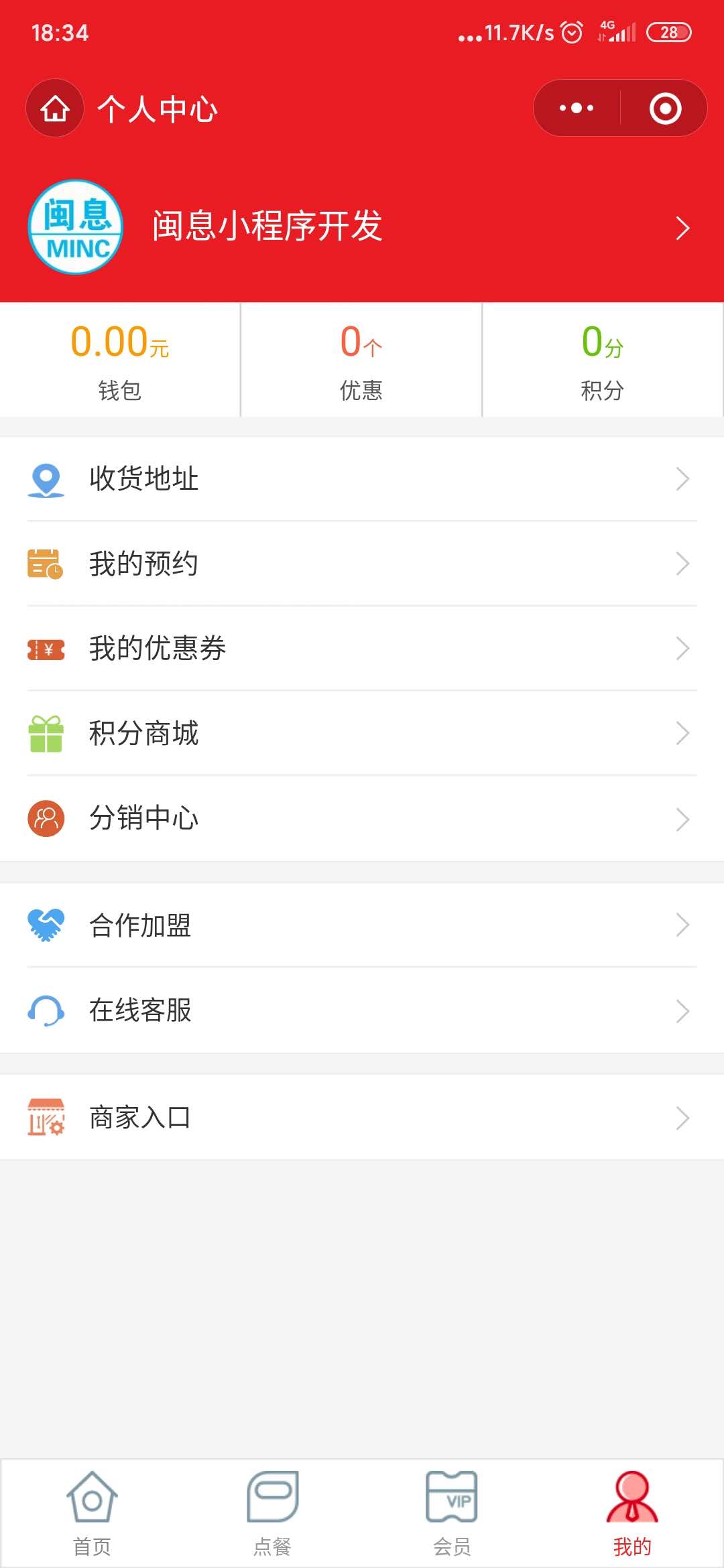 接下来让我们一起看下本次闽息网络科技推荐的外卖小程序解决方案功能界面。