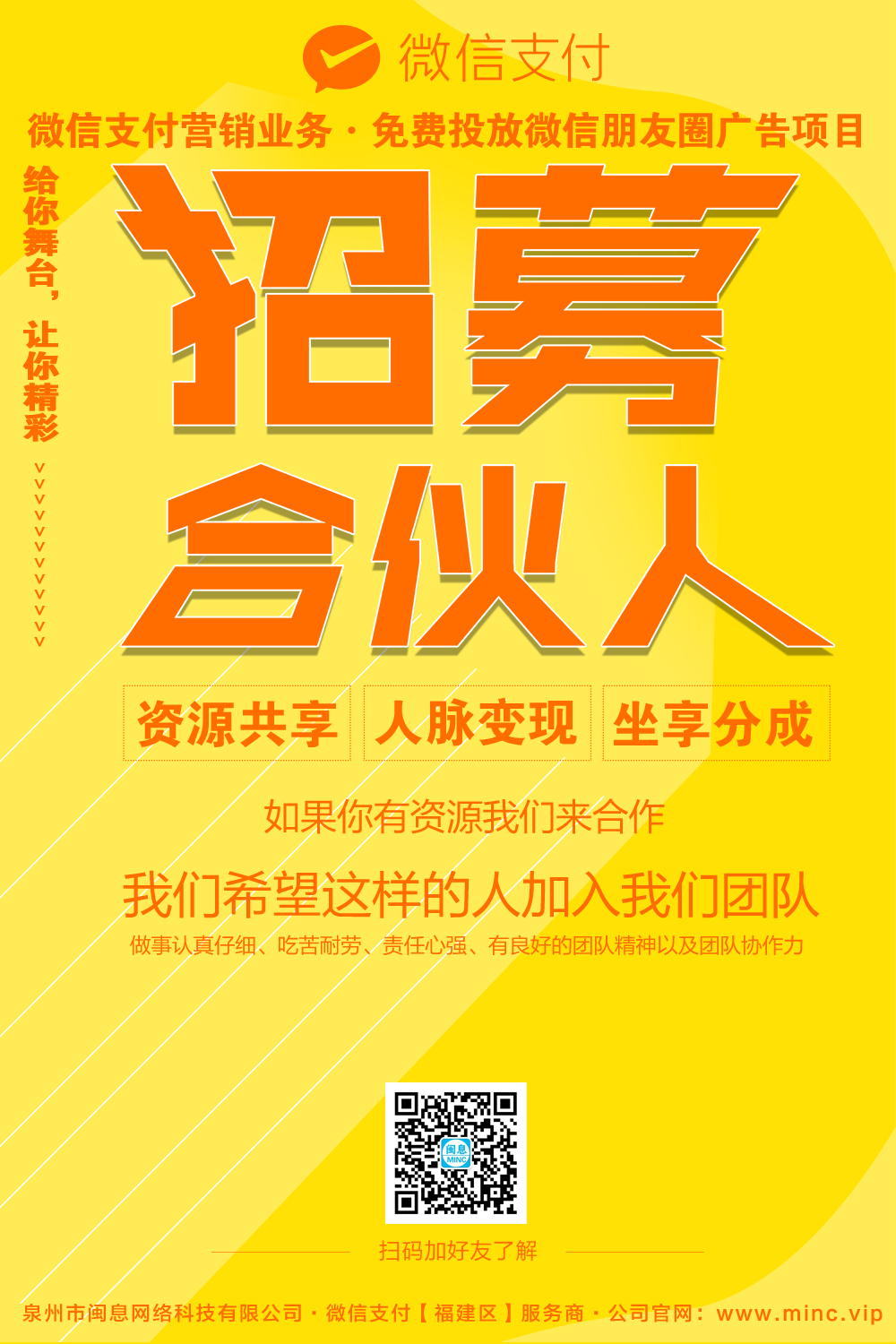 闽息网络科技免费微信朋友圈广告项目急招区域代理。