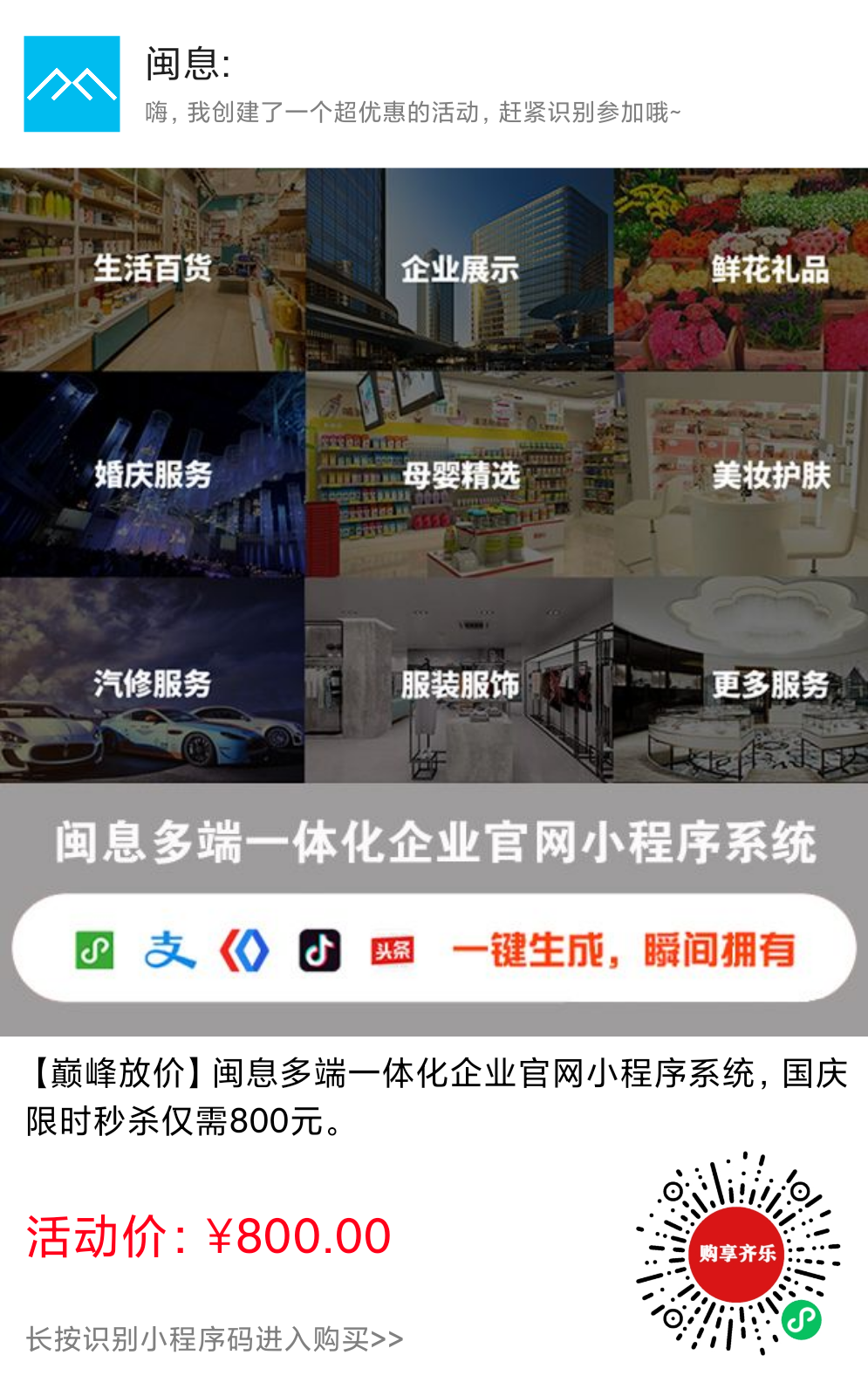 【巅峰放价】1元抢十几种营销利器,闽息小程序开发限时5折。